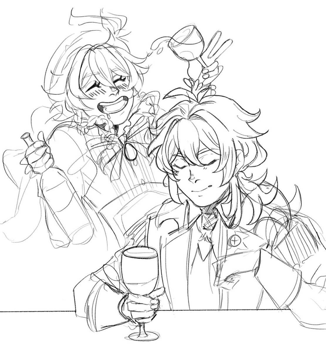 I drew this some months ago but please have this drunk Venti and Diluc 🍷 #GenshinImpact #genshintwt #venti #Diluc #DiluVen #ArtistOnTwitter