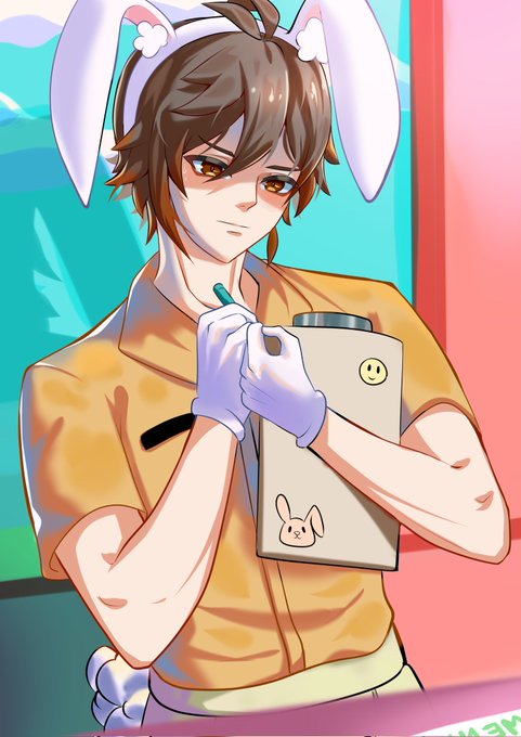 Shares are very appreciated 🌻 . Zhongli in bunny waitress costume 🐰🐰🐰 . Random tag #GenshinImpact #zhongli #GenshinImpactfanart #zhonglifanart #comifuro15