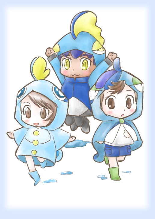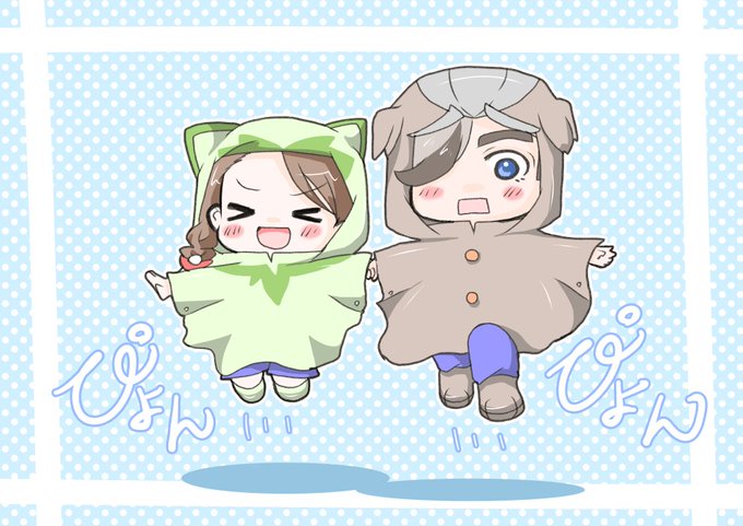 【ペパアオ/雨/#ペパアオワンドロ】 ポンチョでぴょんぴょん☔