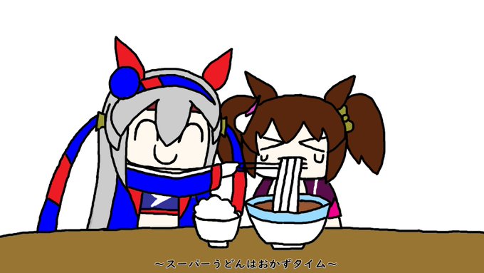 タマちゃんのうどんはおかずや狂騒曲 ご飯とマリアージュ #ウマ娘 #イラスト #パロディ