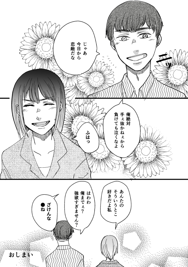 43 422 青と夏を聴いてたら思いつきました。 どちらもいいやつで、お互い良い友人関係であるっていうのが好きなんだよなぁ〜〜〜〜!!! #創作百合 #創作漫画 22/08/06 18:32