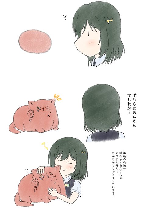 梅雨の栞子ちゃんとぽむらにあんさん #しおぽむ #ティータイムもふもふ