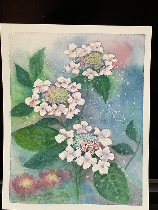 マスキングを取って 一応これで完成🎨 がくあじさい #水彩画 #独学練習中