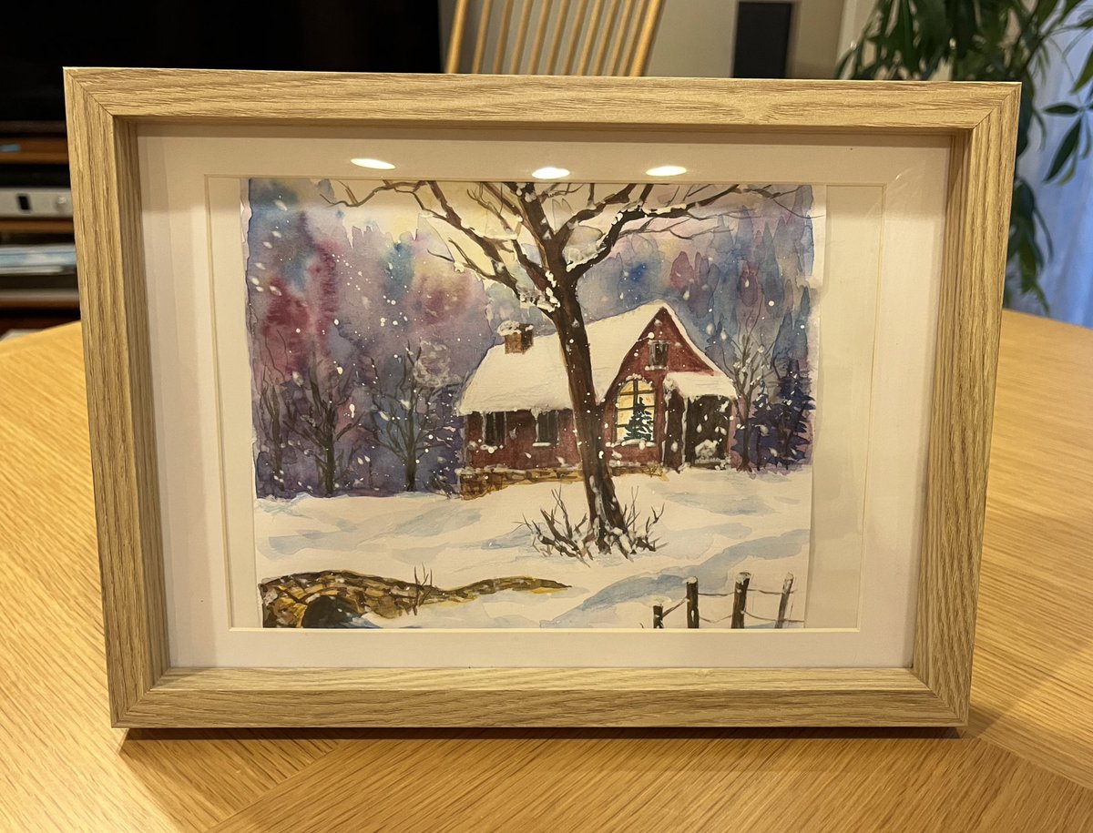 0 9 以前描いて飾っていた絵ですけど、雪景色⛄...💦 流石に季節外れなので.. 春っぽい感じで 久々に 描いてみようかなぁ.. #水彩画 23/05/14 18:09