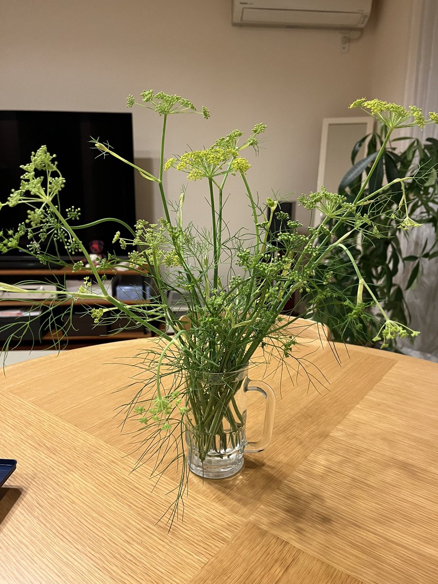 夜遊びの途中 もしゃもしゃしたウイキョウの花とイタリアンパセリの花が もしゃもしゃの絵に.. #水彩画