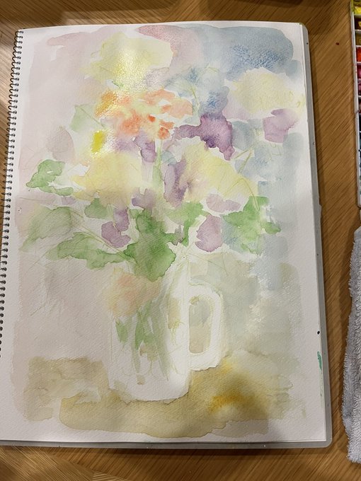 1 9 一昨日の続き。 ちょっとづつ楽しみながら描いているから どんな風になるかは分かりません🎨 #水彩画練習中 #水彩画 23/07/04 19:40