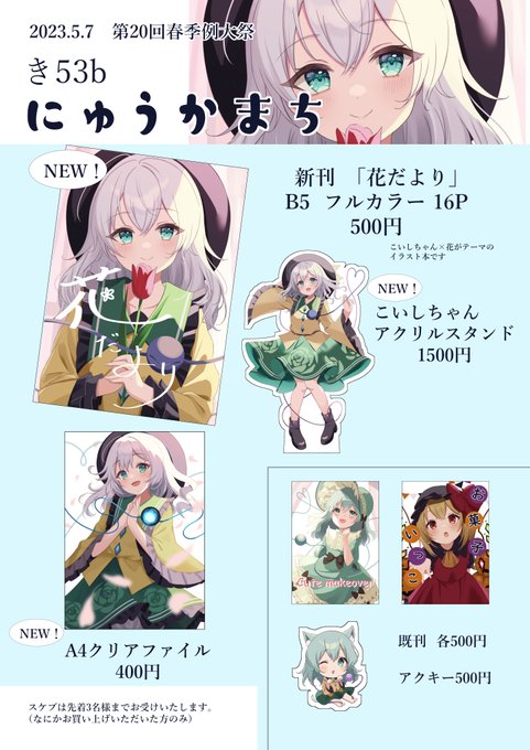 69 269 #例大祭20 5/7博麗神社春季例大祭のお品書きです~! 新作の本とアクスタとクリアファイルを持っていきます! き53bでお待ちしております!! 23/05/03 17:58