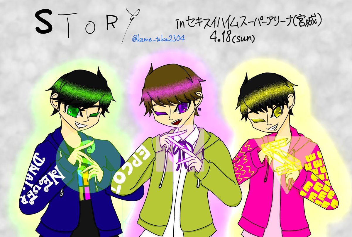 バラバラバージョン STORYのOP衣装(1枚目) N・E・WのOP衣装(2枚目) STORYリメイク衣装(3枚目) 幸せなLIVEを沢山ありがとう! #NEWS_STORY #NEWSでお絵かき