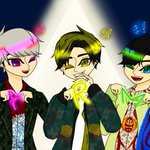 #今年も残りわずかなのでお気に入りの4枚を貼る 色んな種類の絵が描けたのでは…?という年になったかなぁ(^^) 秋頃から色々あり過ぎて描く時間なくて、しんどかったけど久々に同期三人描けたの良かったな(*´﹀`*) 4枚目は中々出すタイミングなかったやうだけど、舞台の為に描いてお気にです( ´﹀` )