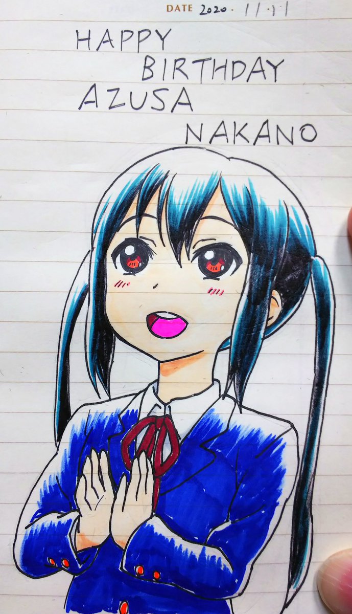 15 38 あずにゃんに色を塗ってみた。 ちょっと遅いけどハピバ‼️ #中野梓生誕祭2020 #けいおん 20/11/12 00:21