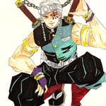 #悲鳴嶼行冥誕生祭2023 お誕生日おめでとうございます! 居るだけで安心できる大樹のような人。😺ちゃんを可愛がる姿に癒やされるばかりです…☺️✨ (再掲、模写アレンジ) 鎖が大変だったけどすごく満足した思い出…⛓️