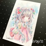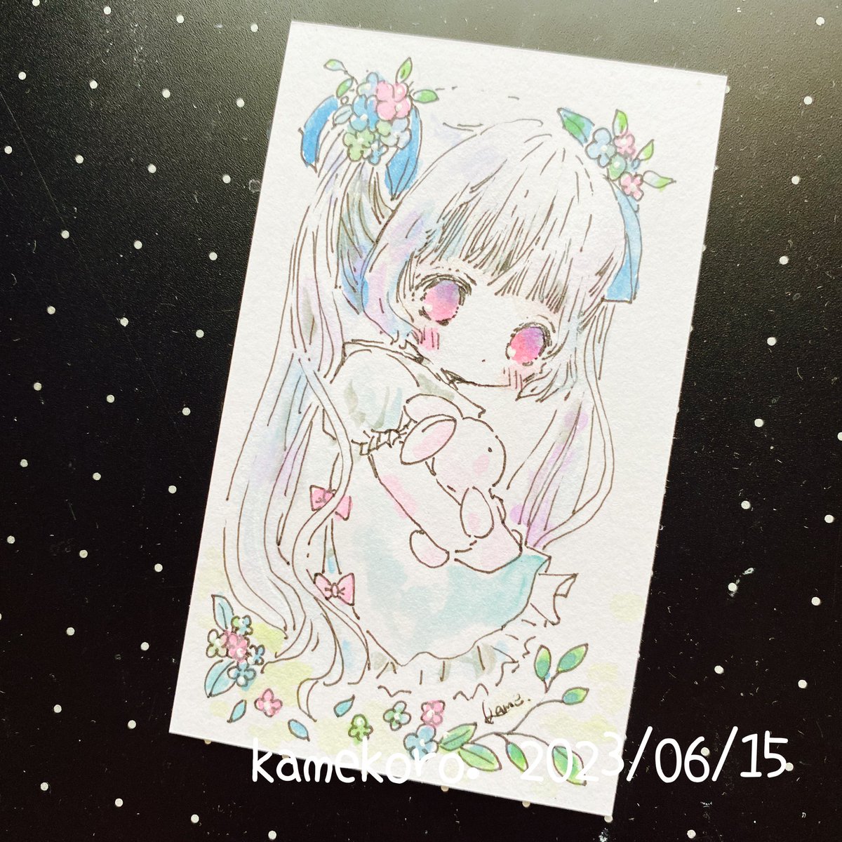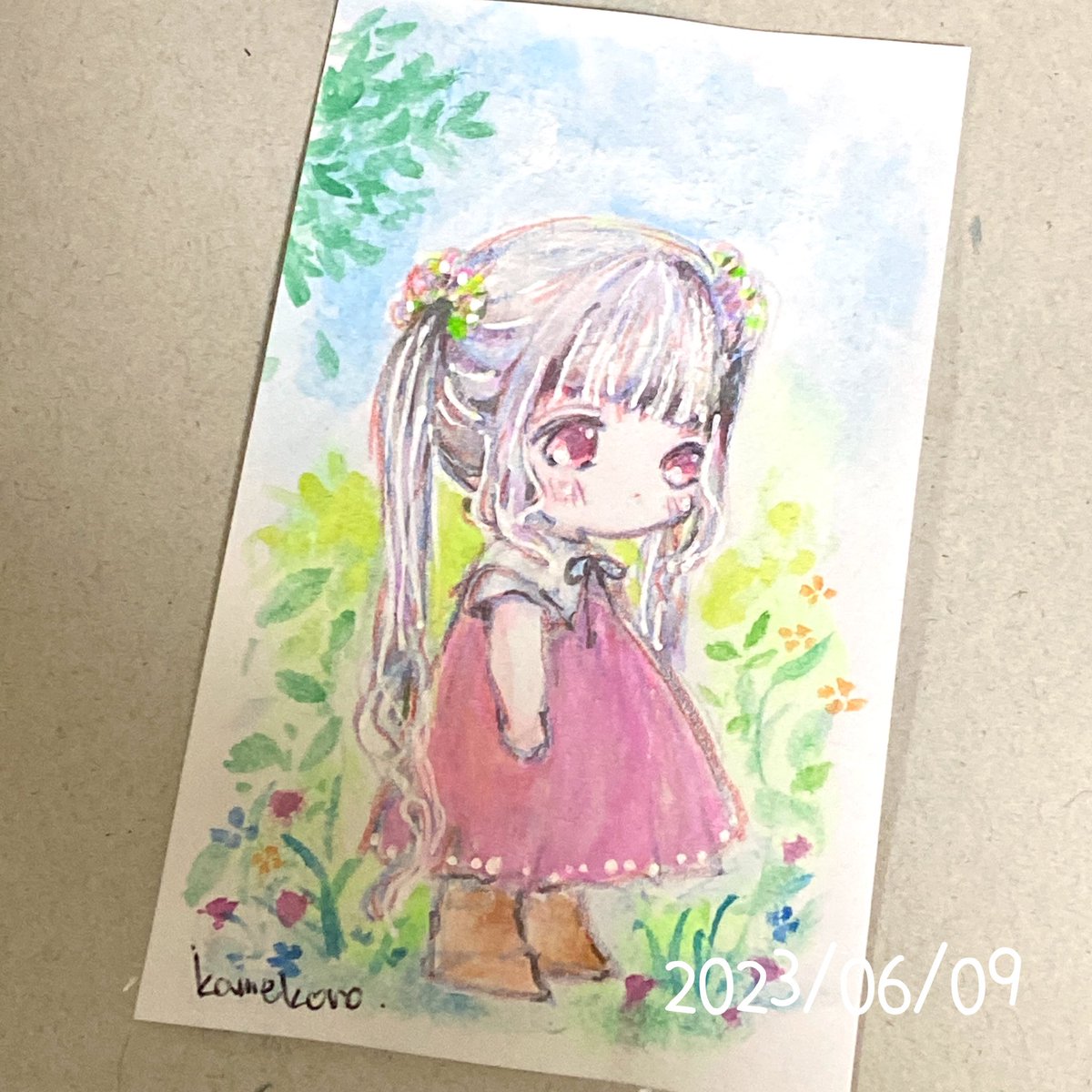 0 1 花リボン #顔彩 #水彩イラスト 23/06/11 07:33