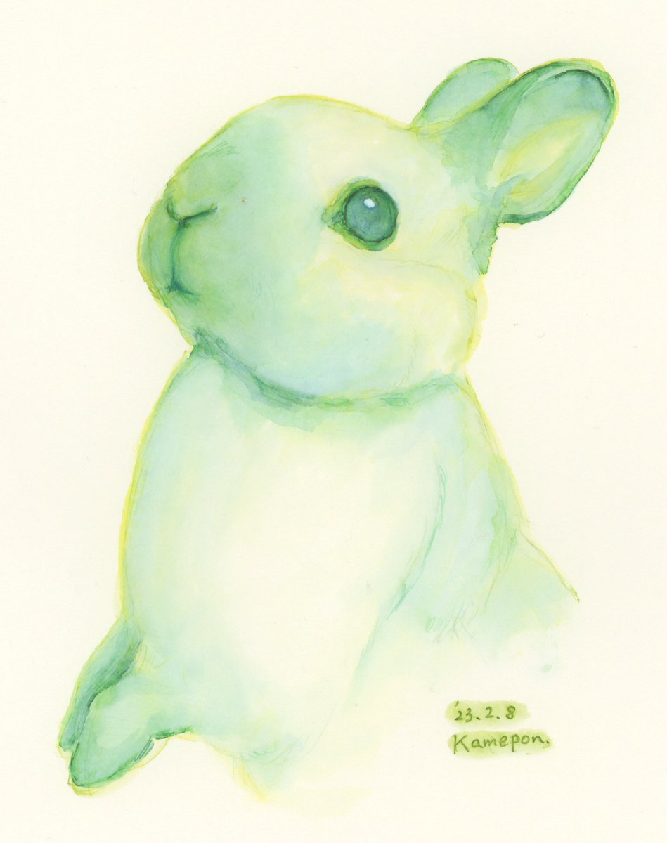 インク画100本ノック! 45/100 今日は明るいカラーの立ち耳さん☺️ 毎日暖かくてもうすっかり春ですねぇ🌷 #うさぎ #イラスト #インク #rabbit #illustration #ink #inkdrawing