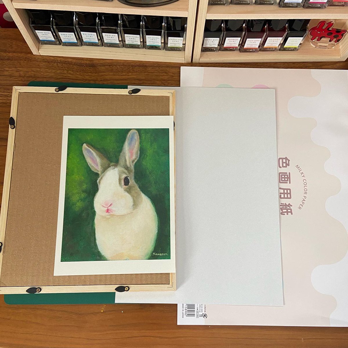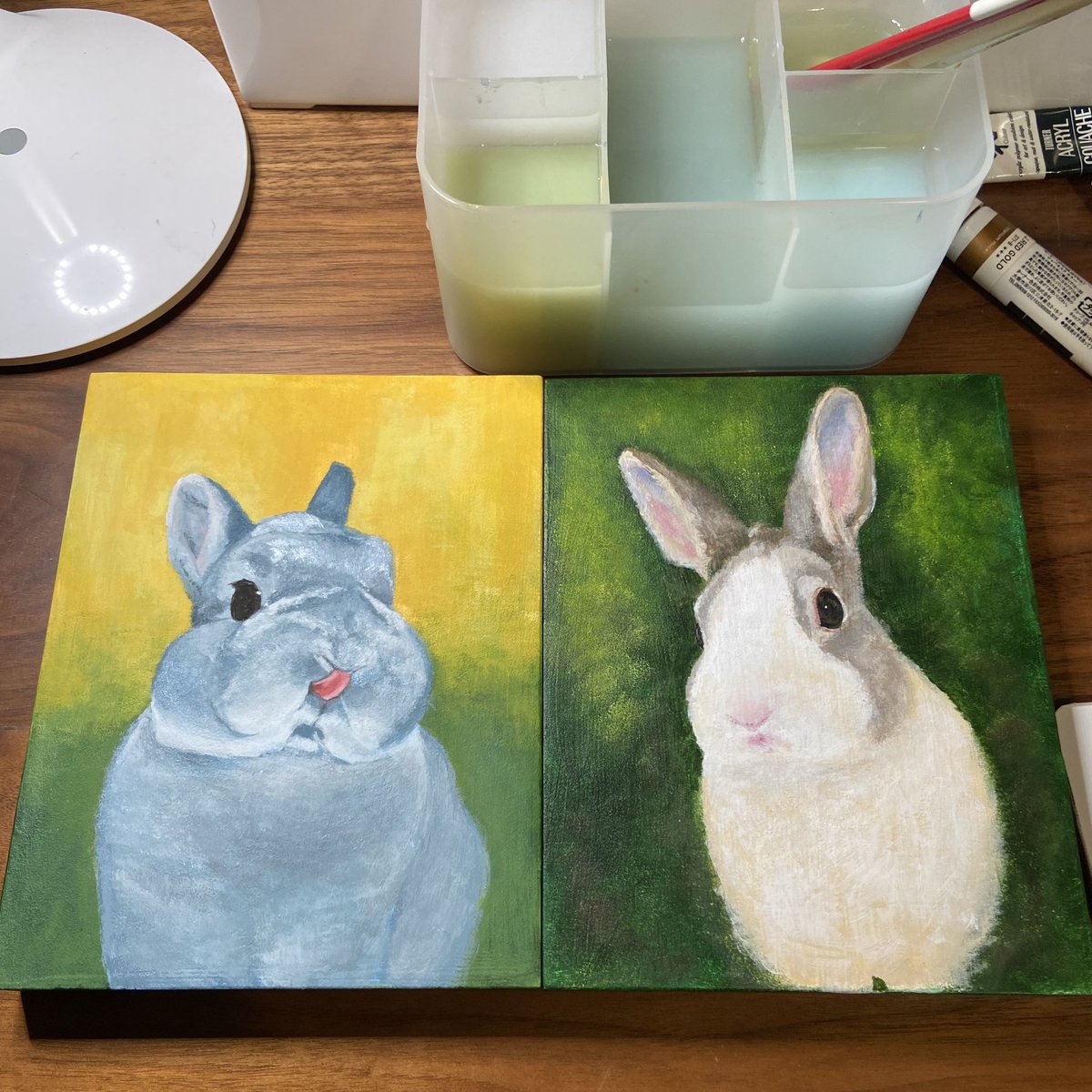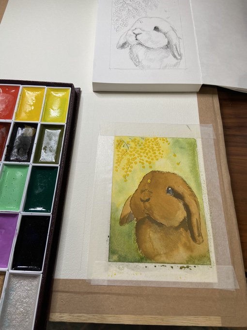 浮かび上がるロップちゃんらしきもの… うさぎ肖像画メイキング画像 そのうちメイキング動画を撮ってみたいですね✨(訳:やり方イマイチわからない) #うさぎ #イラスト #アクリル画 #rabbit #illustration #acrylicpainting