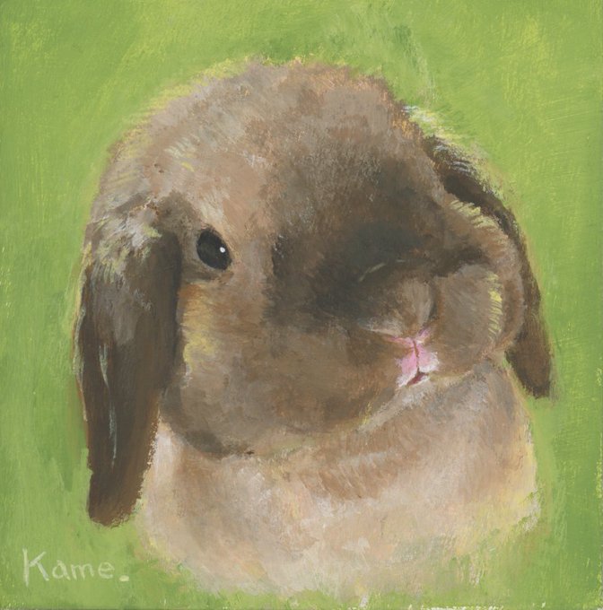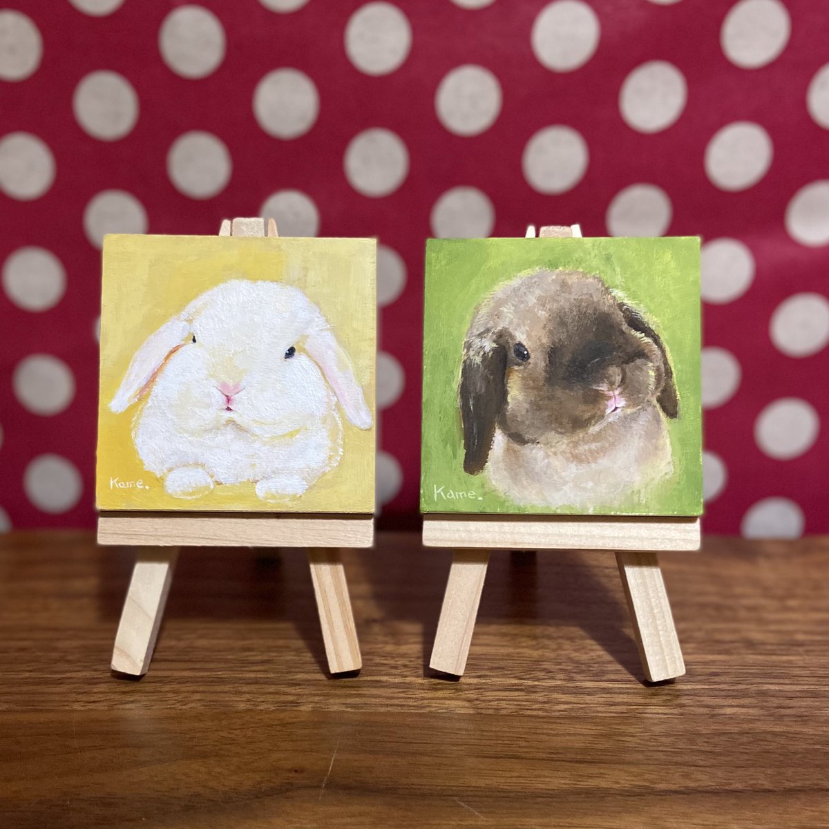 インク画100本ノック!お休み中 うさぎ肖像画mini トートカラーのロップちゃん! ロップちゃんコンビが完成しました✨ 7*7cmの木製パネルに描いてます✨ #うさぎ #イラスト #アクリル画 #rabbit #illustration #acrylicpainting #painting