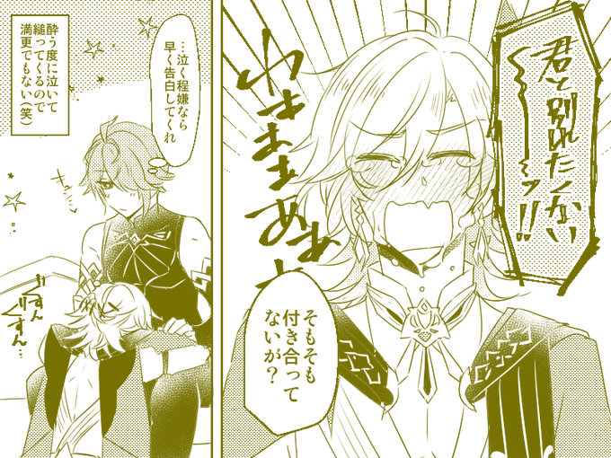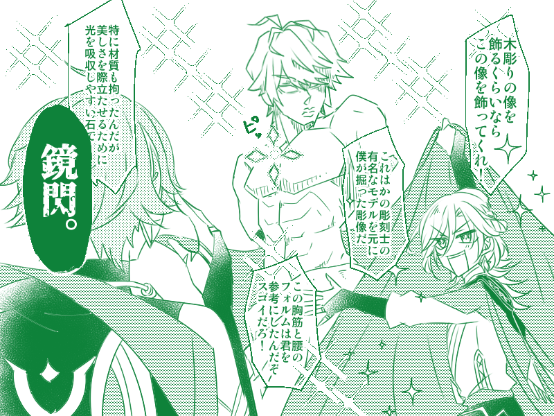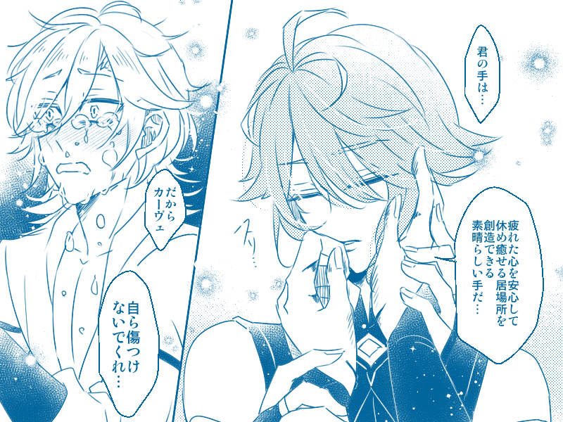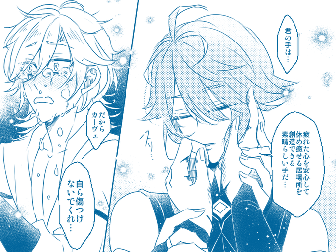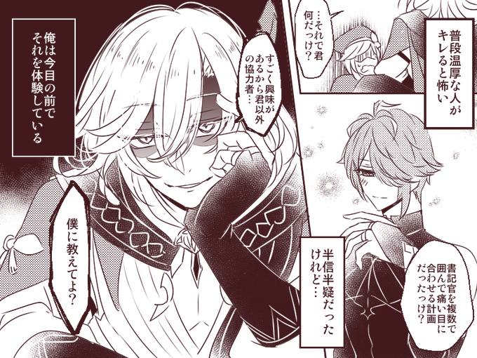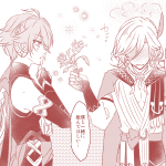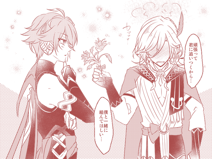 #kavetham #カヴェアル 🌱「それは君の素材だから渡されても困るんだが」 🏛「~~ッ分かってるよ!君はホント空気が読めな…」 🌱「一つでも多く糧にしてくれ。……君が来るのを楽しみにしてる」 🏛「!?!!!あぁ、待ってろよ🌱!✨」