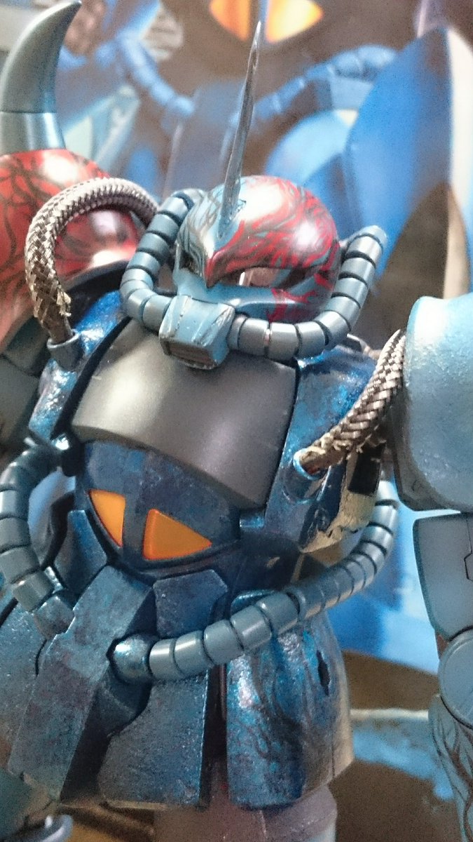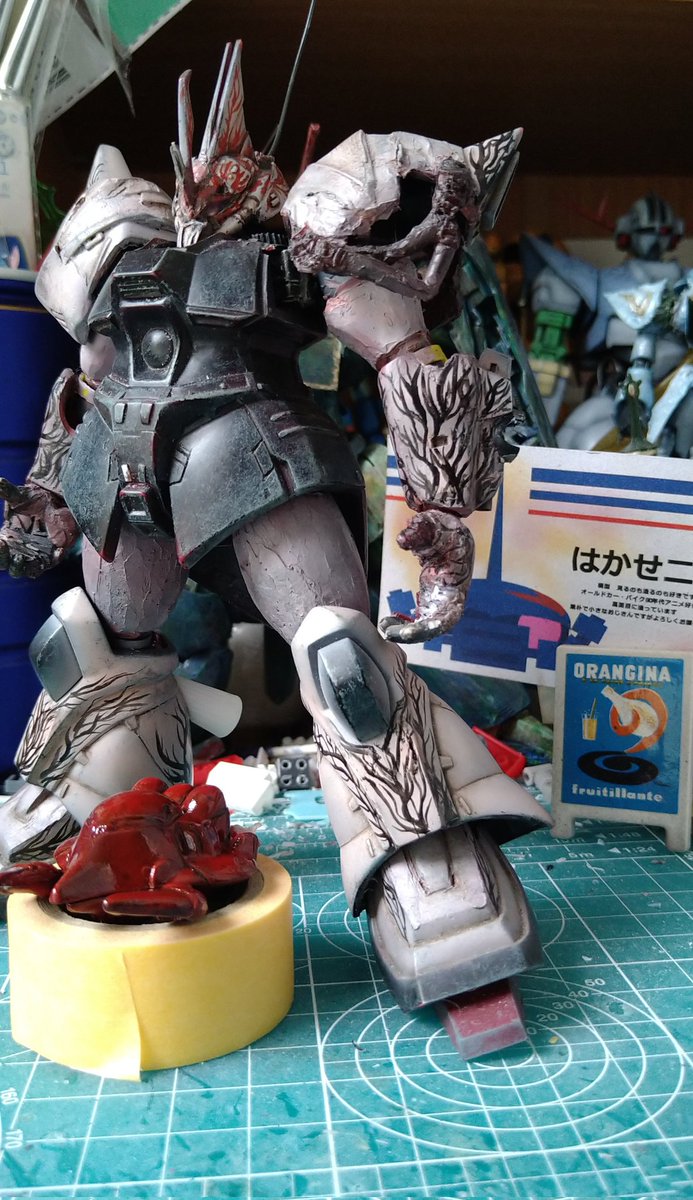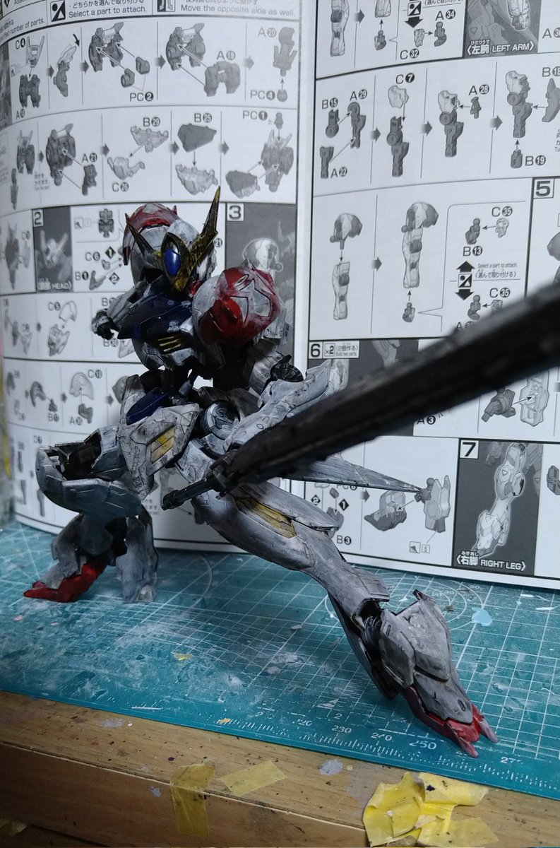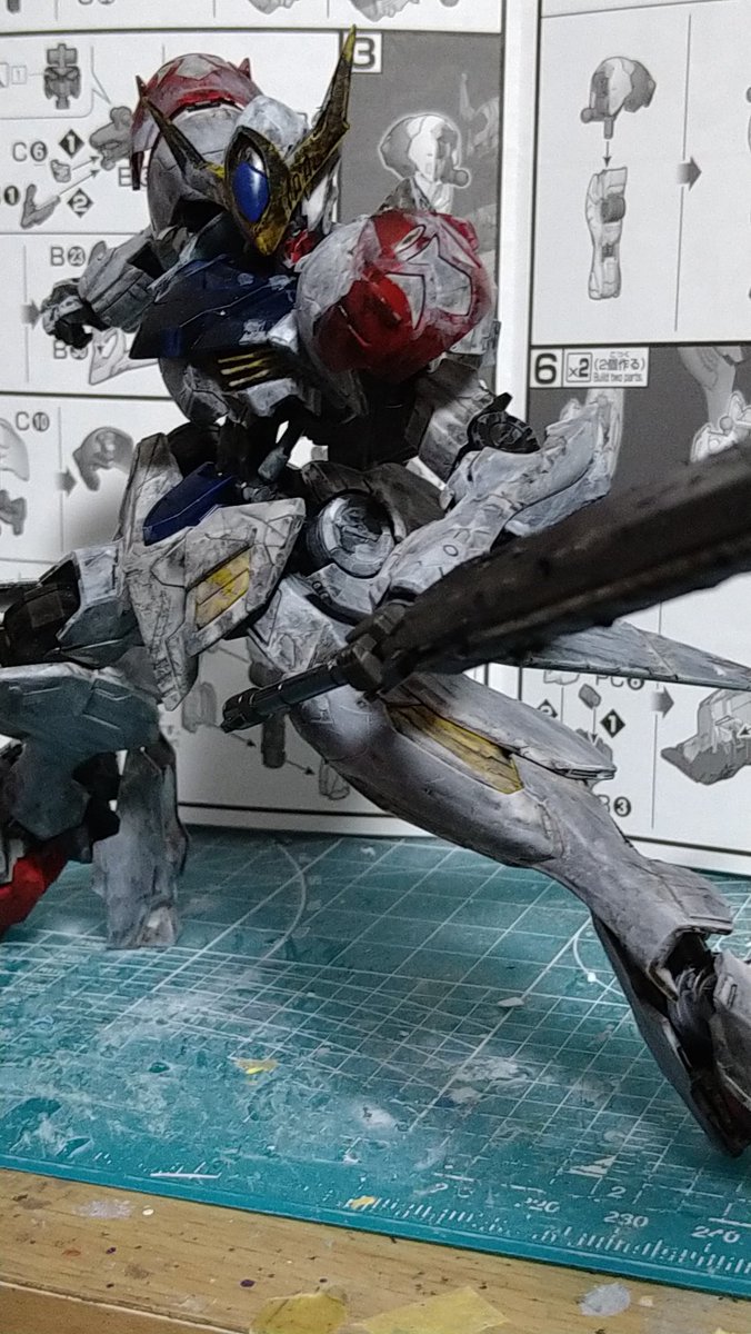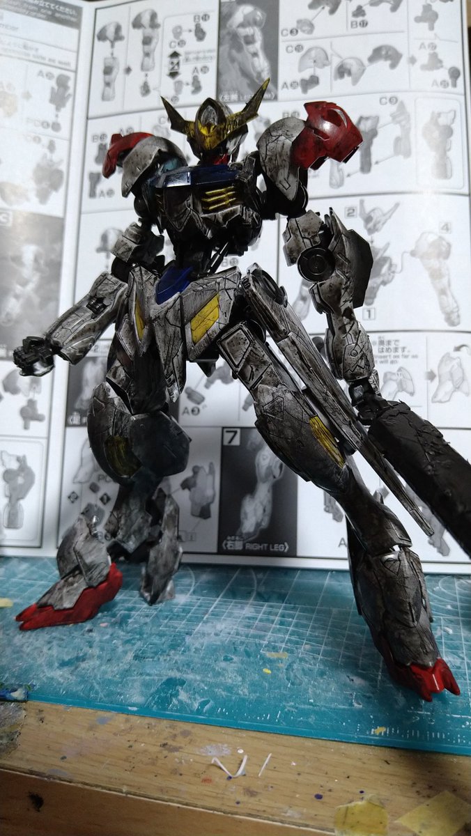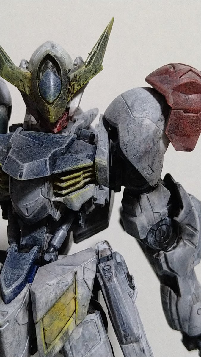 #ガンプラは自由だ #鉄血のオルフェンズ 尺の都合でサフレス塗装ですが(*'ω'*)! 後日スミ入れ&ドライブラシ&ウオッシングをm(_ _)m 思いの外…悪党面に⁉(@_@;) 良い感じかと思います。 今夜は、こんな感じです。