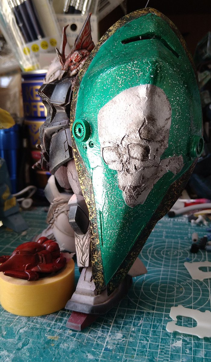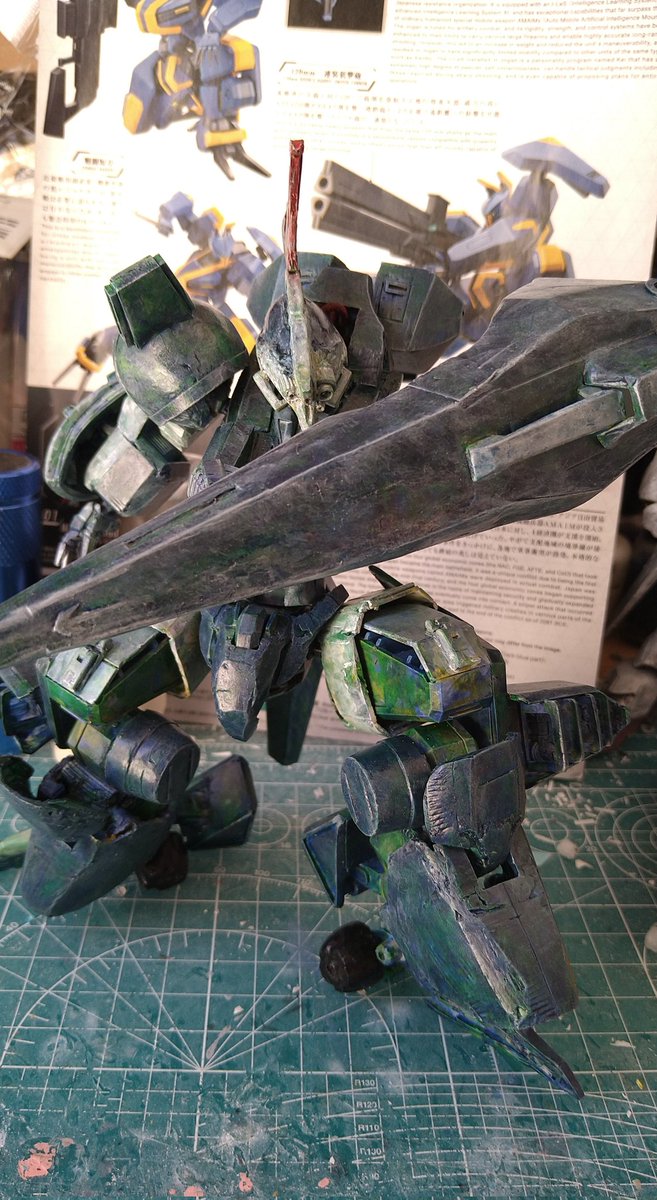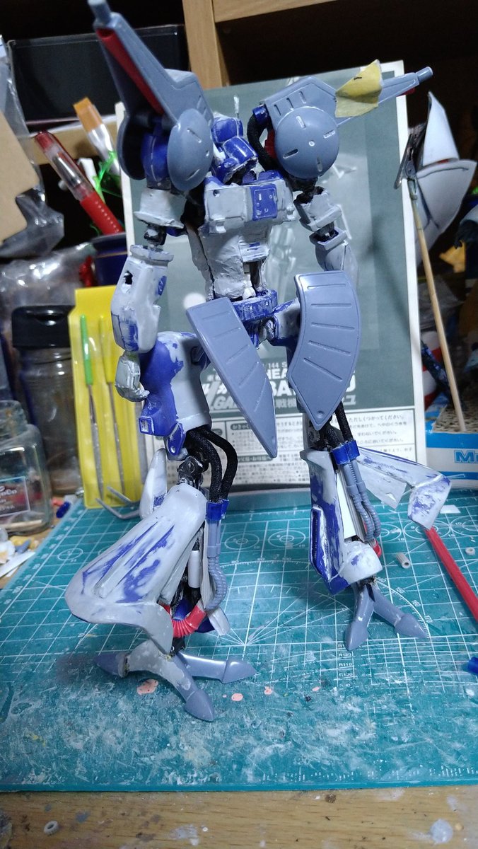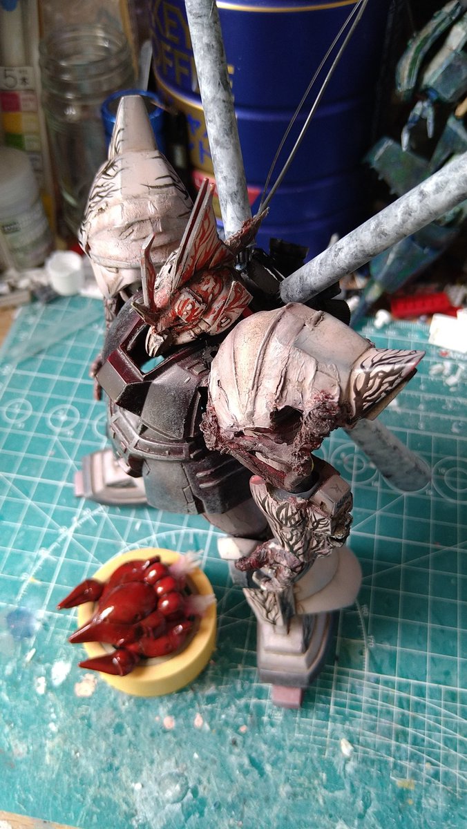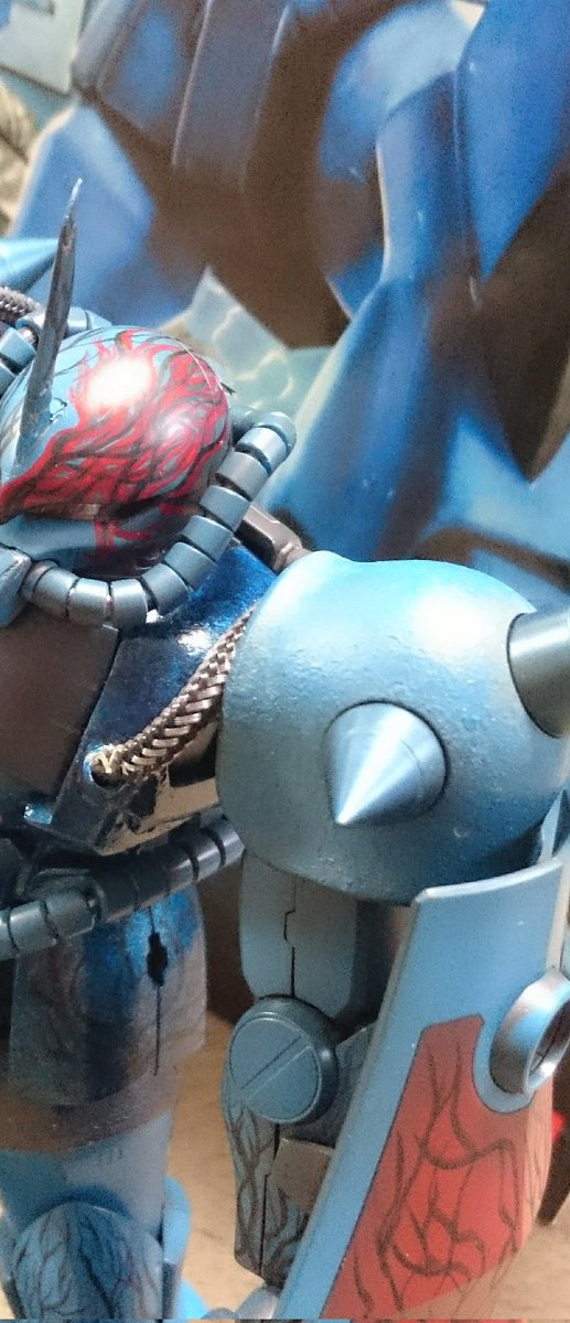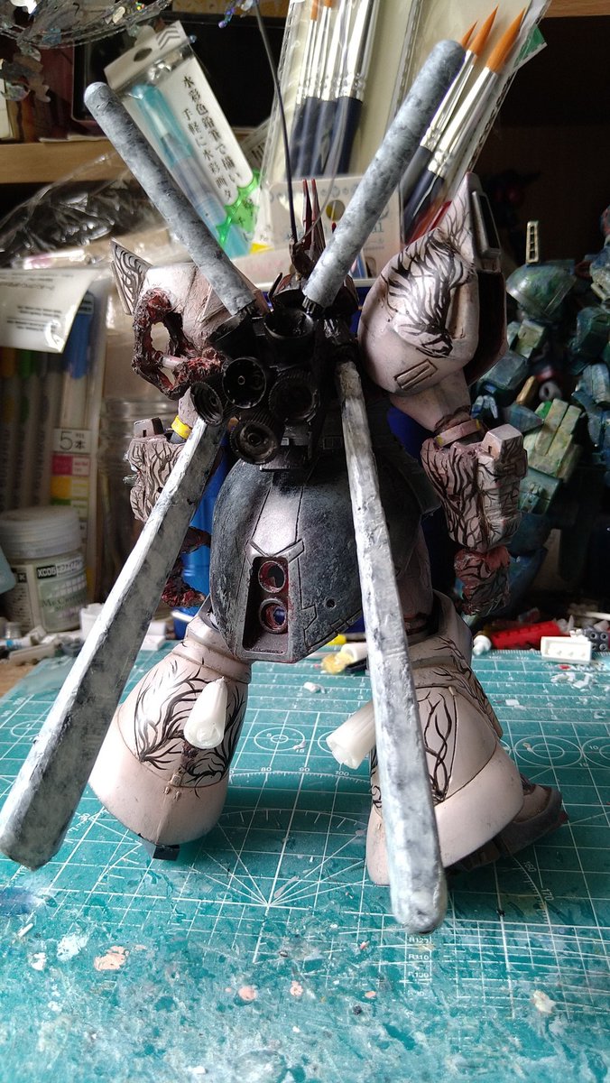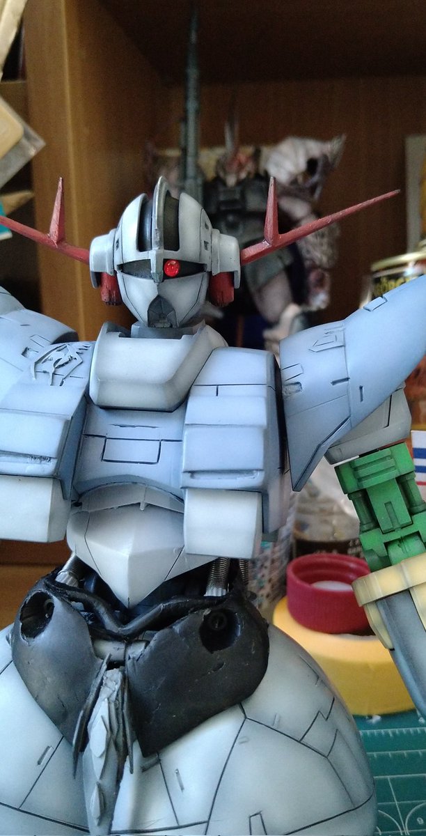 #ガンプラは自由だ #鉄血のオルフェンズ 尺の都合でサフレス塗装ですが(*'ω'*)! 後日スミ入れ&ドライブラシ&ウオッシングをm(_ _)m 思いの外…悪党面に⁉(@_@;) 良い感じかと思います。 今夜は、こんな感じです。