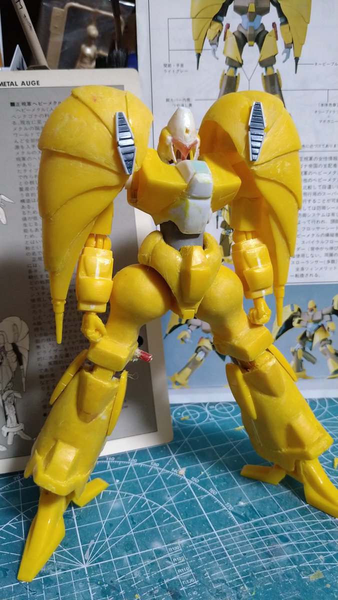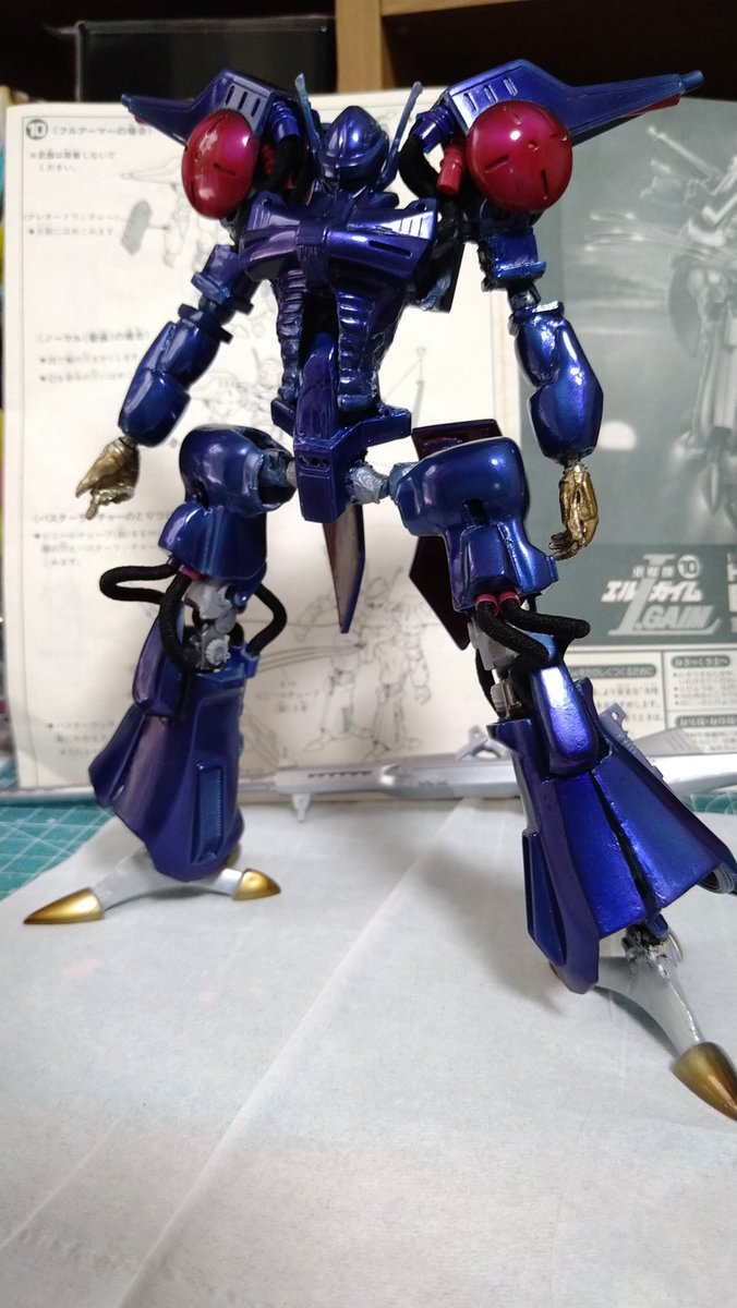 #これを見た人は塗装前と塗装後を貼れ #旧キット #エルガイム いつものですが~m(_ _)m 144/1スケッチ旧キットベース 憧れをオマージュ✨ 憧れのオージェ🔶です! (´-`).。oO…スマホの勝利! 最近はとても高画質で助かります🙇