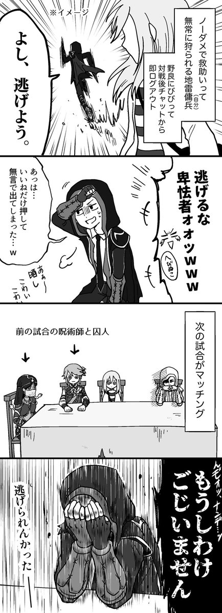 逃げたけどマッチングが許してくれなかった。 めちゃくちゃド戦犯連発して本当に申し訳ごじいません