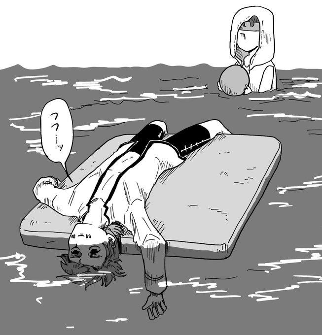 129 1279 なんかラクガキ でかいビート板に寝っ転がって、この体勢で水面のキラキラを楽しむのが好きだった。 23/08/12 14:25