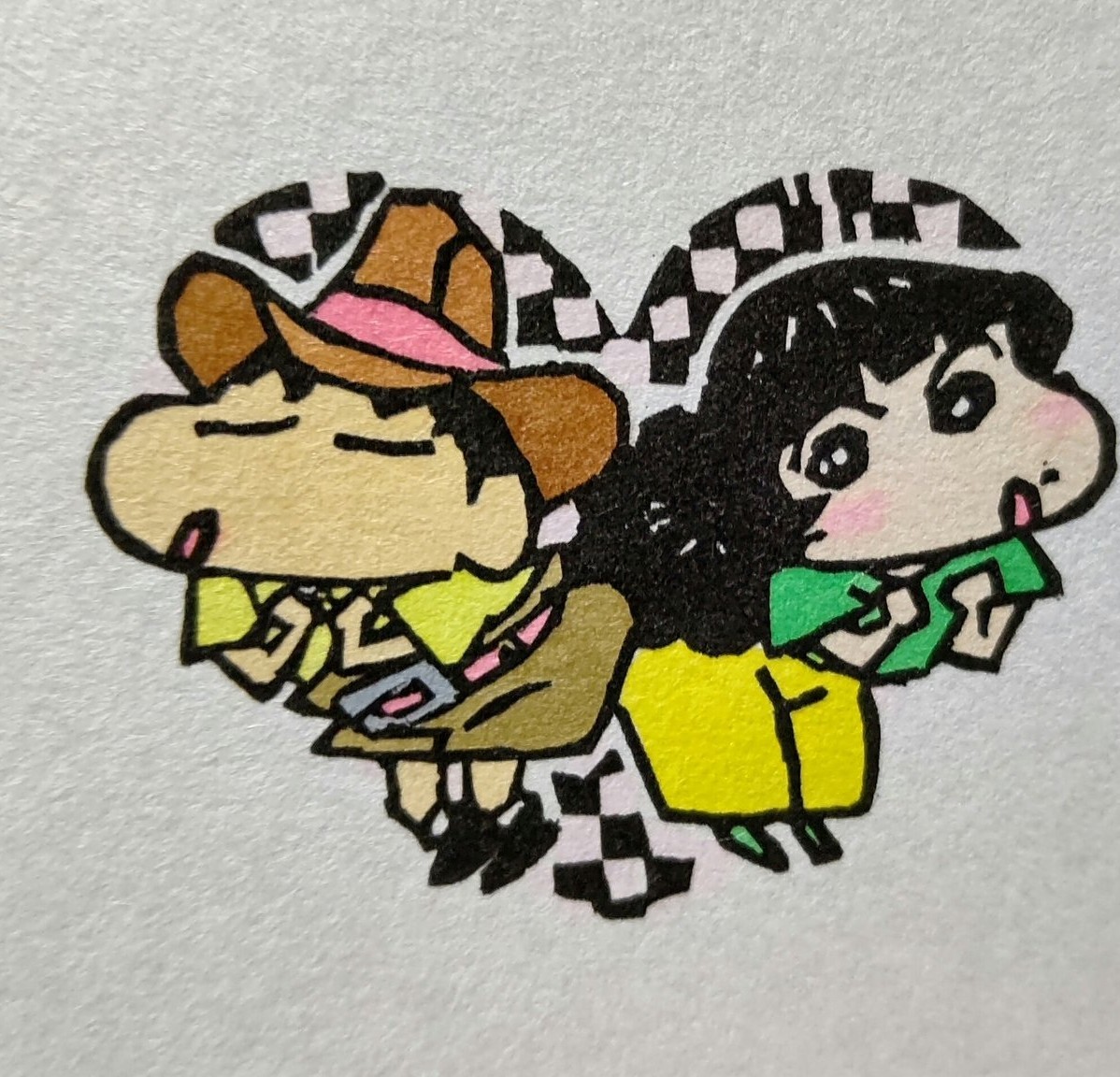 彫って捺したのを塗って 完成させました〜 あいみょんとのコラボ( ꈍᴗꈍ)ケツ #クレヨンしんちゃん #消しゴムはんこ #コピック