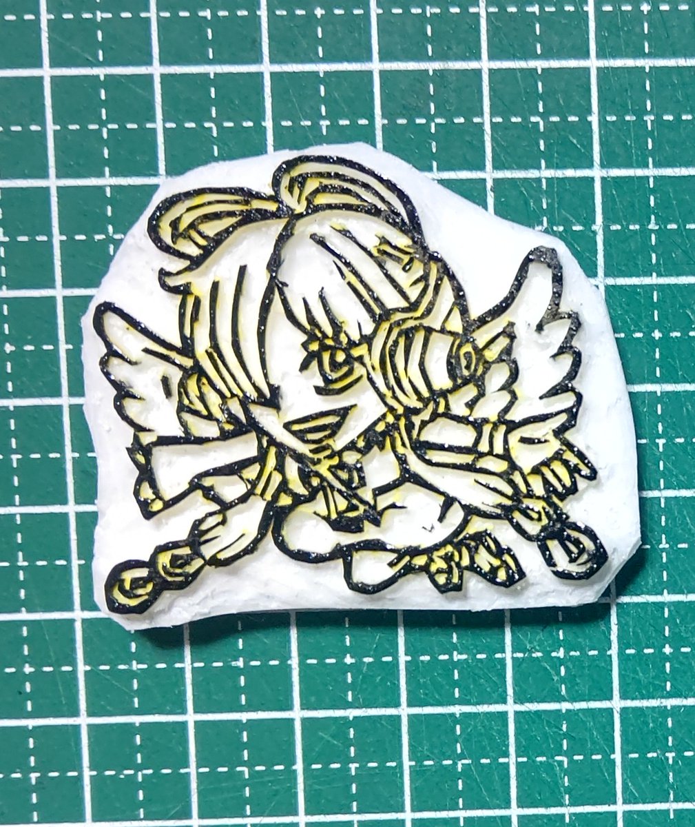 1 2 彫って捺したのを塗って 完成させました〜 鼻の部分残せて良き( ꈍᴗꈍ)ウマ #ウマ娘 #消しゴムはんこ #コピック 22/09/25 19:04