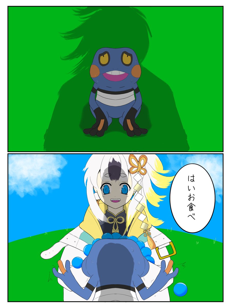 ヤス(グレッグル)に一度に大量のアメを与えるトラちんさん 血糖値が心配ですががんばれヤス #ちん絵