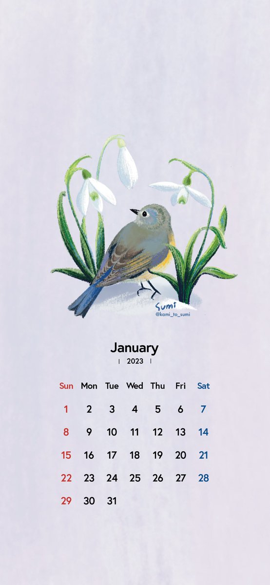 1月の壁紙を作成しました❄️ 今月は スノードロップとルリビタキ♀🐧 どなたでもご自由にお使いください🏕️ ⚠︎個人使用の範囲内で、壁紙としての使用に限ります 今日がお仕事始めの方もそうでない方も よい一年のスタートを⛄️ RT歓迎です🍊 #野鳥 #illustration
