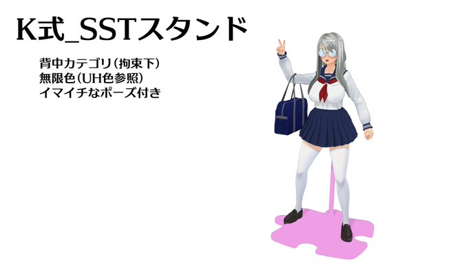 美少女プラモに付いてきそうなスタンドです。 初めてボーンを仕込みましたが色々不完全です。 解除するには拘束を外す系のmenuが必要です。 イマイチなポーズが付いています。 美少女?のプリセットは付いていません。 ux.getuploader.com/kamibako1001_z… #COM3D2