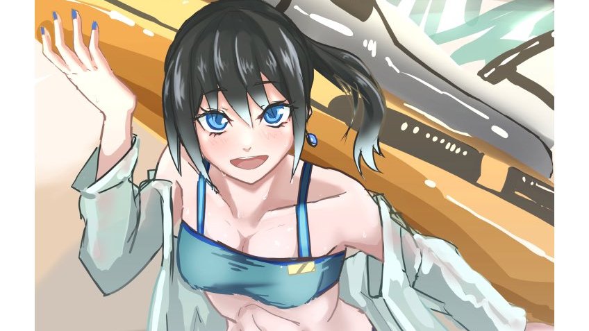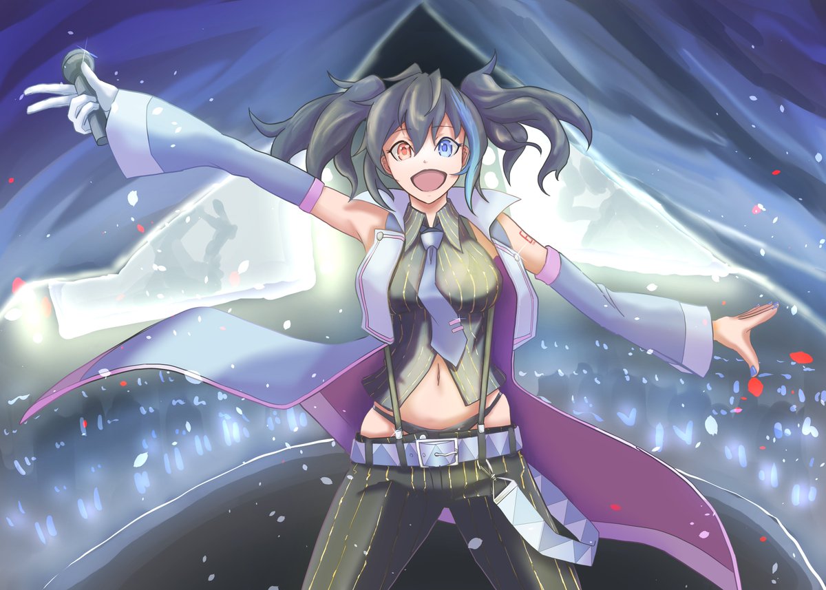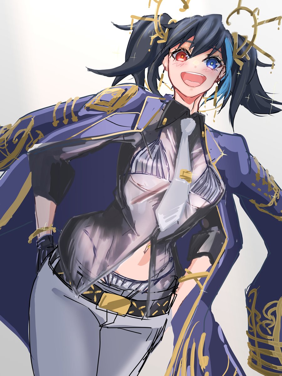 38 91 上着肩掛け+ツインテ金装飾+透け黒Yシャツ+白ビキニ欲音ルコ ルコの日2021のイラスト個人的に好きだったので加筆落書きした 22/06/07 21:38