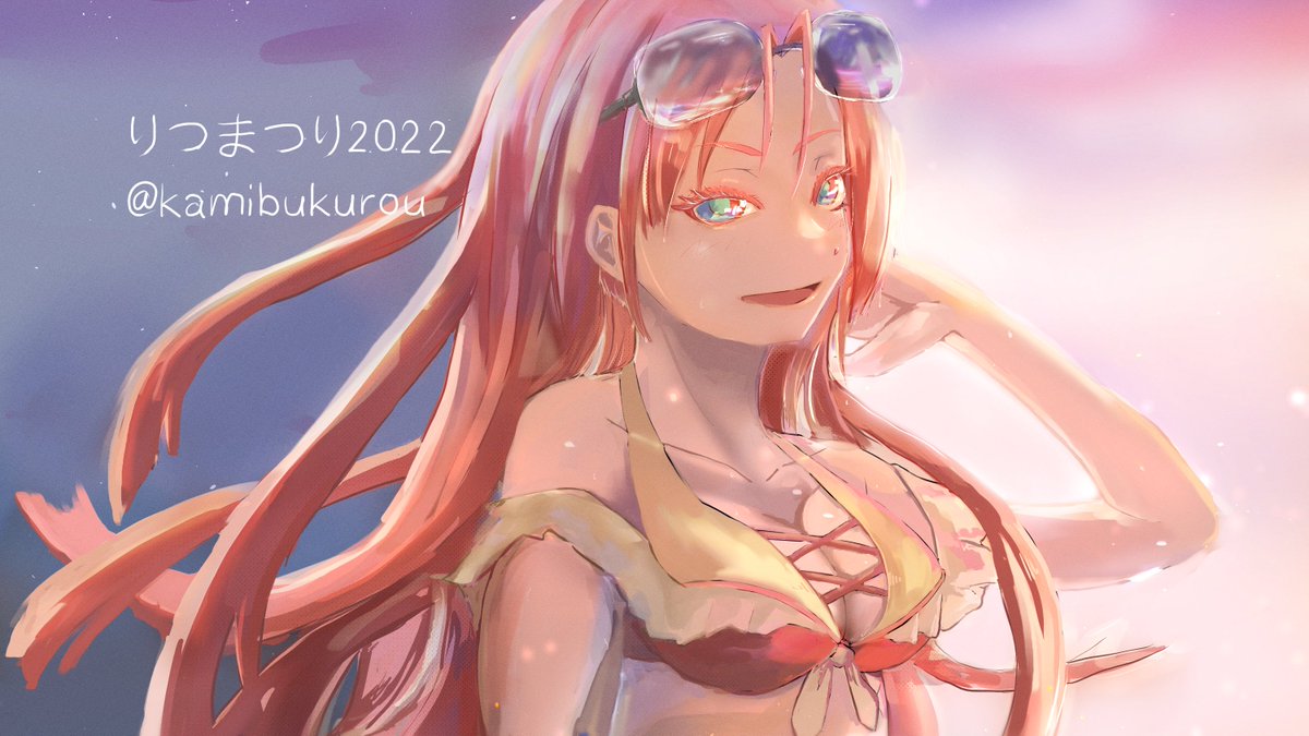 上着肩掛け+ツインテ金装飾+透け黒Yシャツ+白ビキニ欲音ルコ ルコの日2021のイラスト個人的に好きだったので加筆落書きした