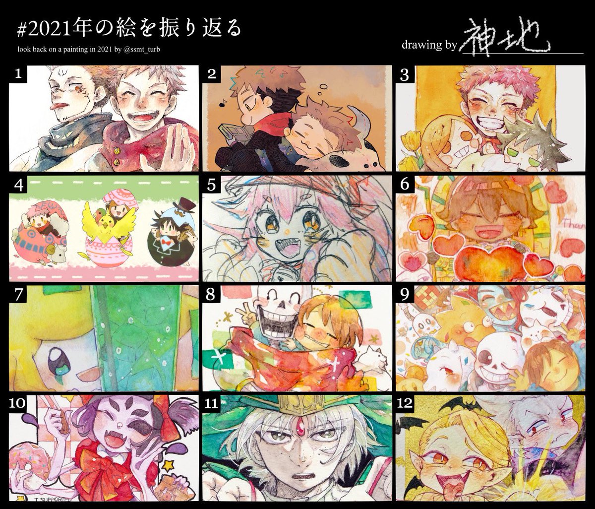 2 11 テンプレお借りしました〜 来年は同じく雑多にファンアートと創作をしたいです💪 #2021年の絵を振り返る 21/12/23 22:18