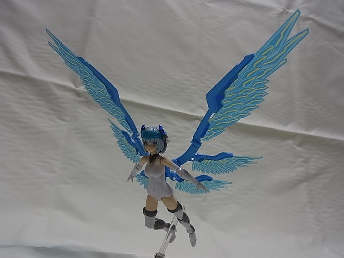 【WF再販】軽くて可動でポーズがつけやすいプラズマウイング。3mm軸で装着。 「プラズマウイング セラフィム」天使の6枚羽。キット2500円。 「プラズマウイング キリサイザー」羽から大鎌に変型。キット1500円。 #wf2020w #WF #WF2020冬 #SHFiguarts #フレームアームズガール #メガミデバイス