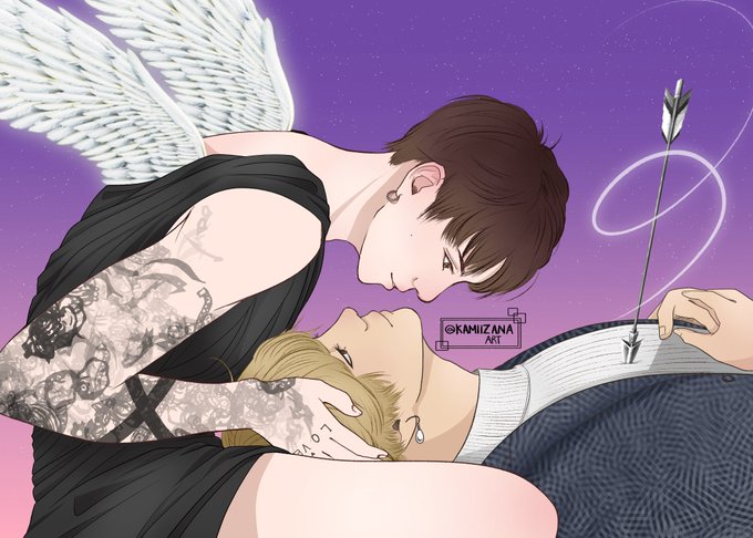 #taekookau where veteran cupid Jungkook, tired of playing matchmaker for a living and wants to live a romance of his own, falls in love with mortal Taehyung, and is willing to do just about anything to make the human fall in love with him. . #taekookfanart#vkook#vkookfanart