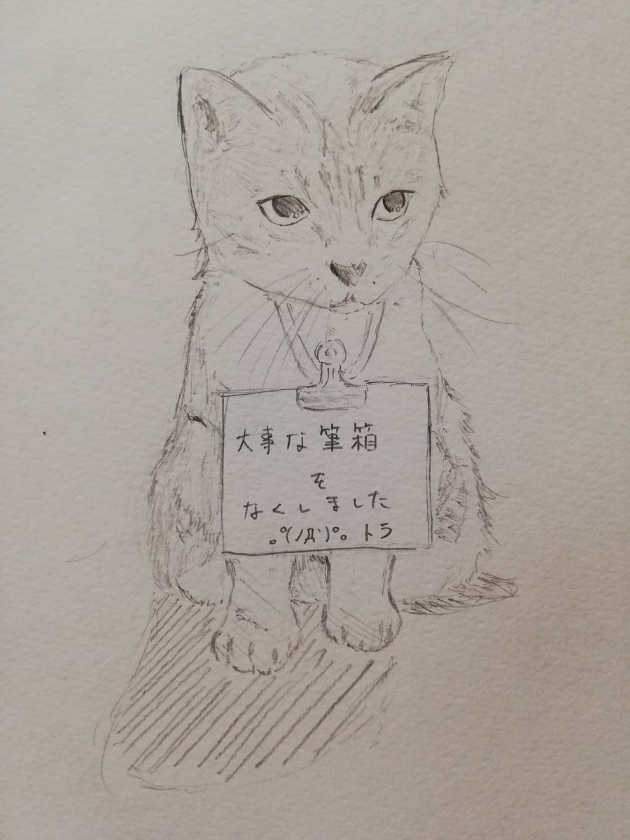 1 9 73枚目。大事な筆箱落としました。。。明日もっかい色々買い直さないと😂 #イラスト #猫 #イラスト好きな人と繋がりたい #絵描きさんと繋がりたい 20/03/16 00:24