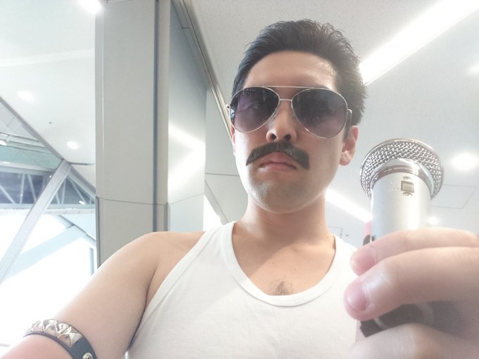 80 161 おはようございます❗ 今日は、フレディマーキュリーのコスプレでうろうろします❗ 見かけたら是非笑ってください😂 暑いですが頑張りましょう❗ 話しかけてくれた方にはもれなく名刺差し上げます 19/08/09 09:38