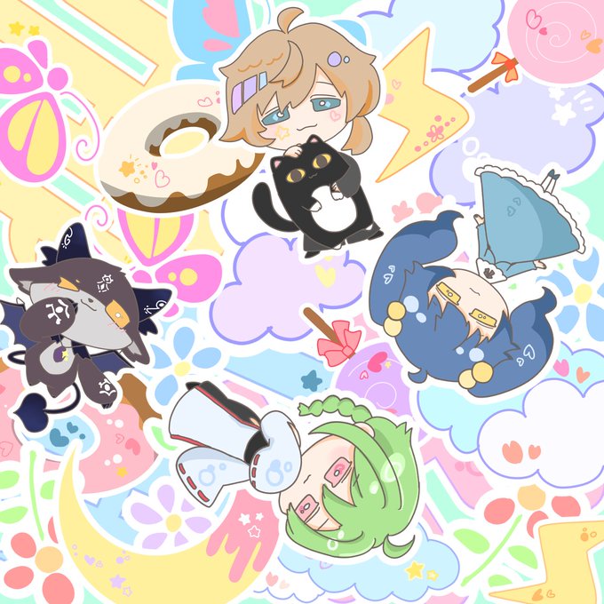 5 67 #レインの依頼書 #イロ絵す #AXIART #絵バンス #まめねことレオス エデン組でステッカーボム風ファンアート🌟✨ 22/09/21 20:50