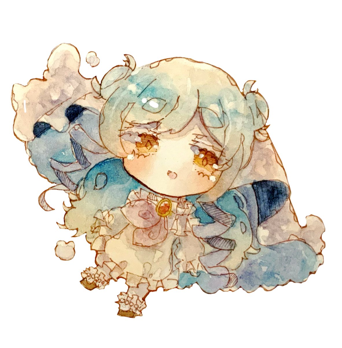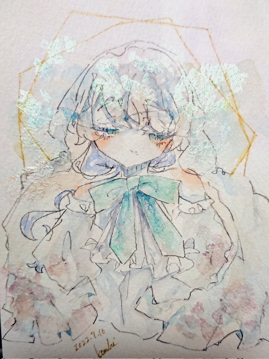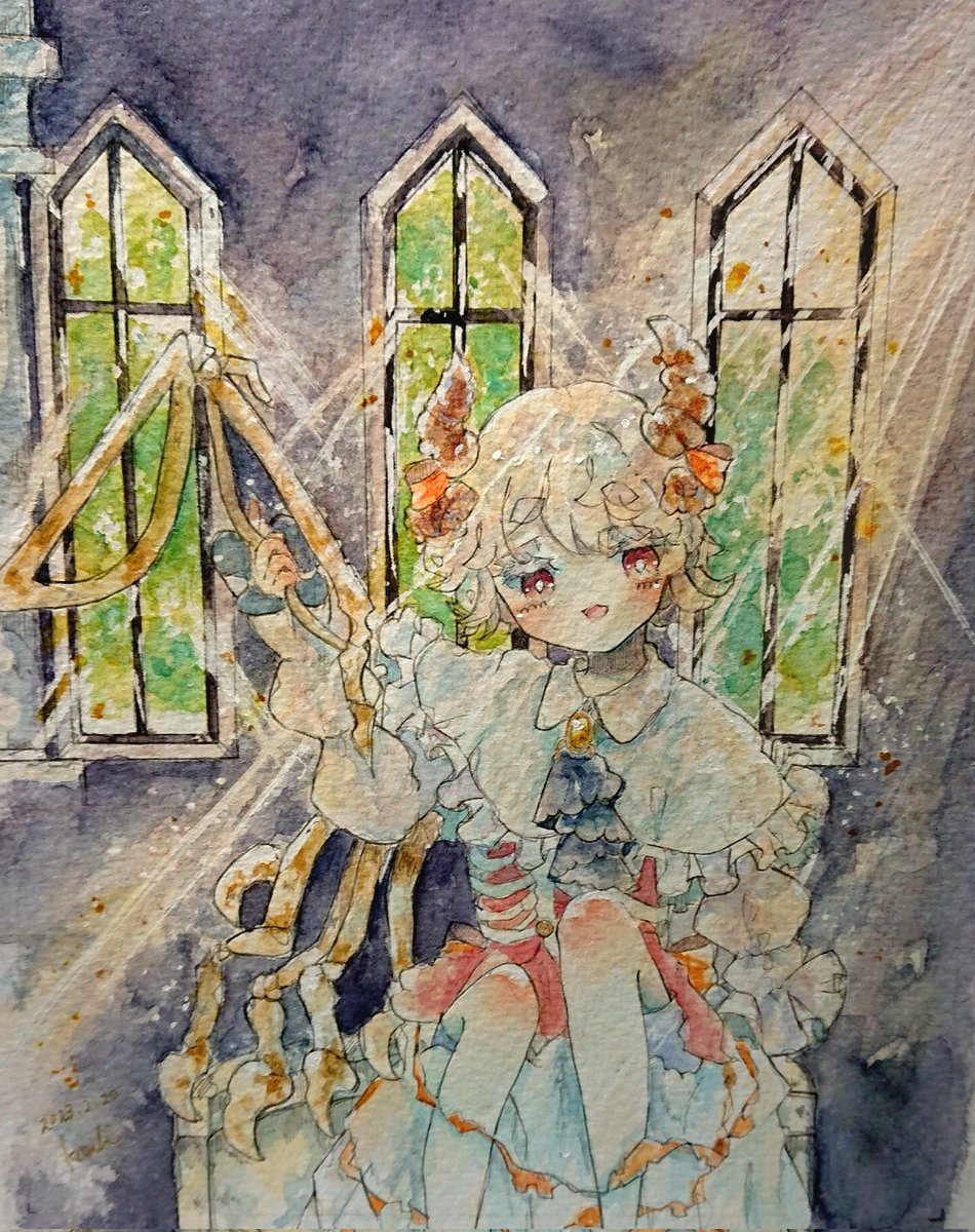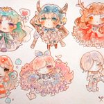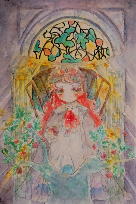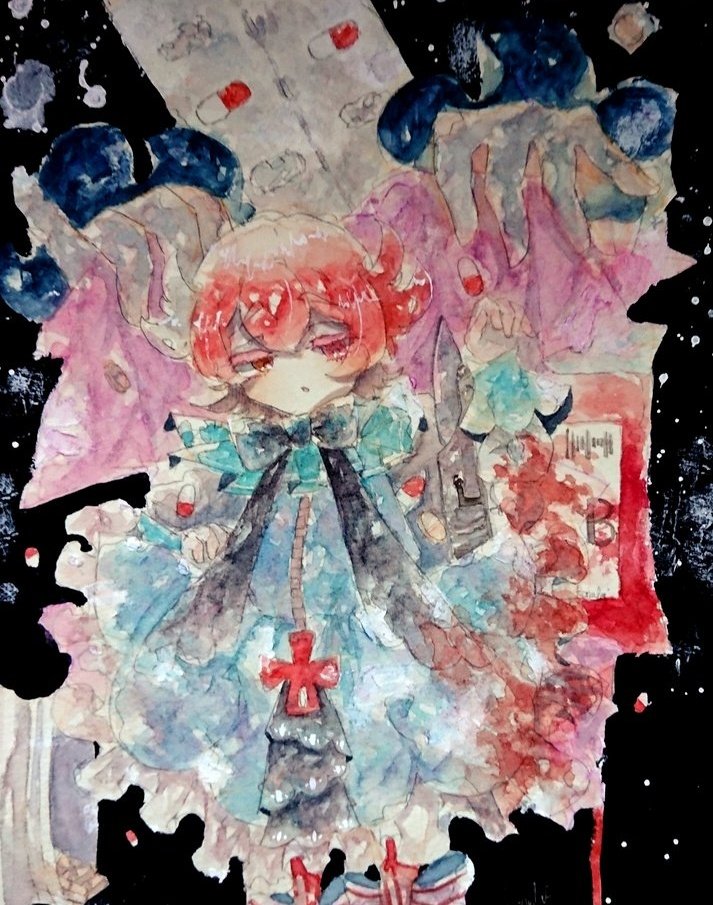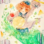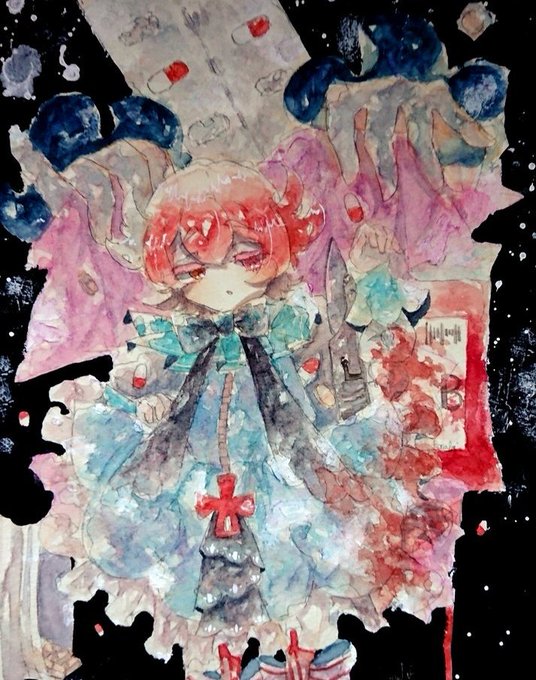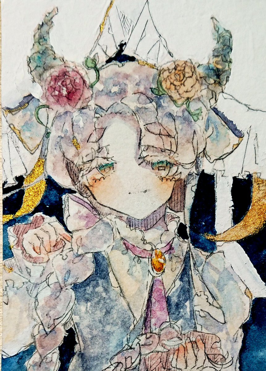 #水彩の魔術師の集い 「私は煌めきの魔法使い」𓂃 𓈒𓏸◌𓍯 主に食べ物などをモチーフに少年少女を描いております。 (下の3枚は牛、ポップコーン、メロンソーダ、水晶がモチーフになってます)