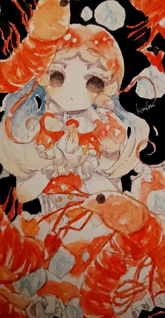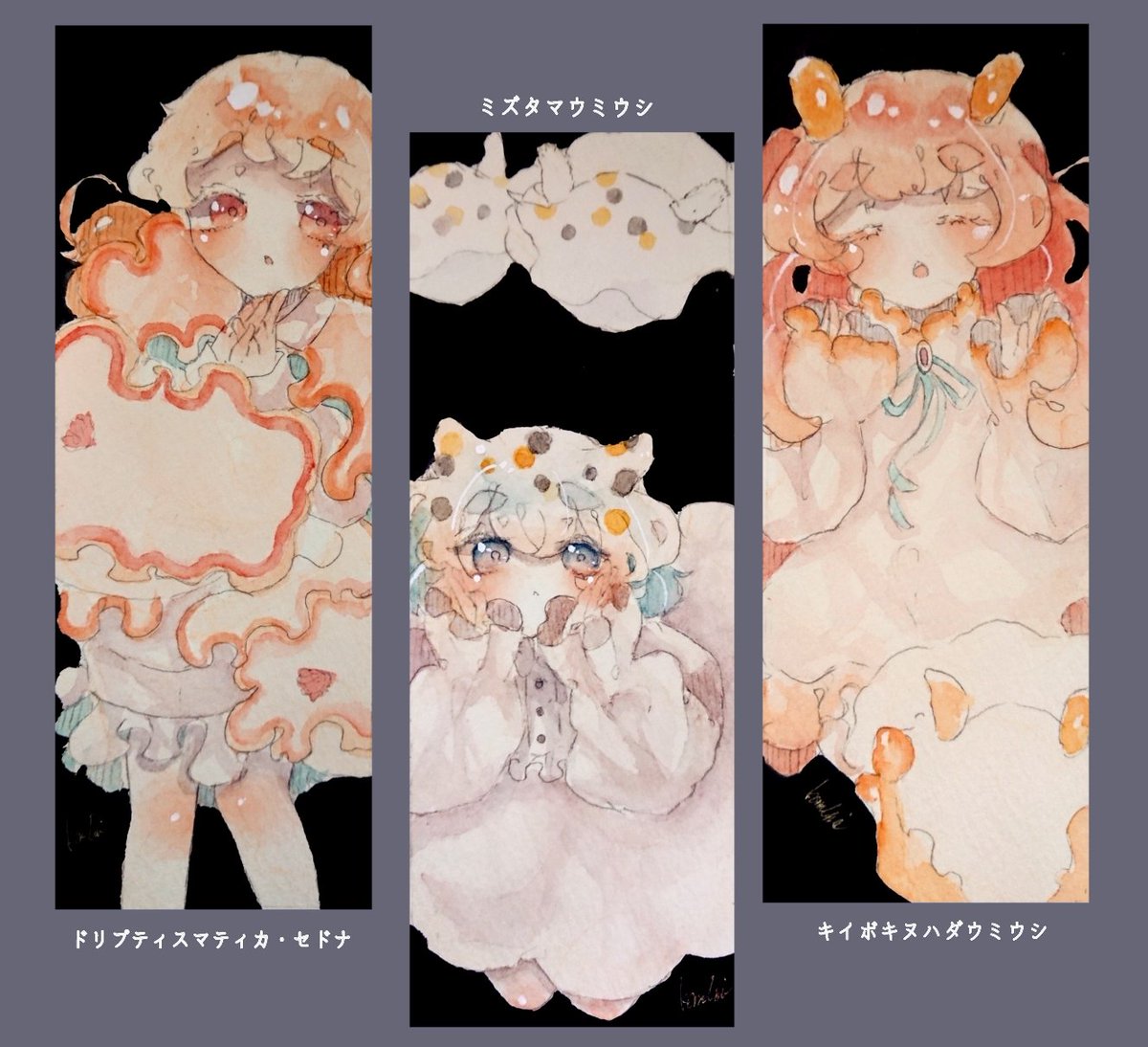 「私は煌めきの魔術師」 2日目も参加失礼致します~! 食べ物だけでなく海も生き物たちもモチーフにしております𓆝 ˜˷ ぜひタップして全体をみてほしい..! (この3枚はウミウシと牡蠣、エビになります) #水彩の魔術師の集い