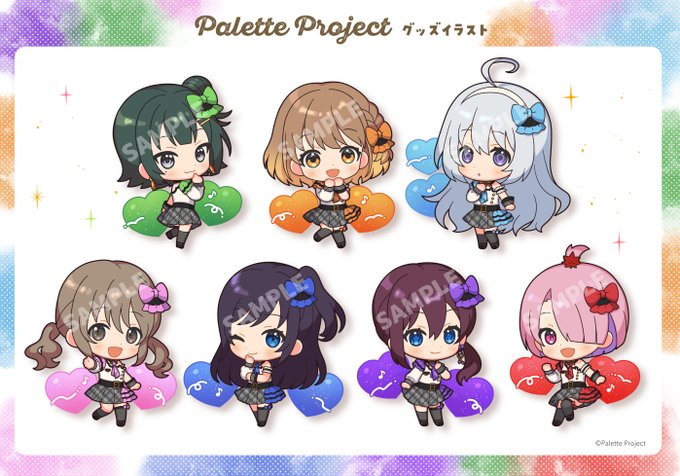 【🎨告知】バーチャルアイドルプロジェクト「Palette Project」(@PaletteProject_ )グッズ用ミニキャライラストを描かせて頂きました。21日より受注販売開始となります。どうぞよろしくお願いします!paletteproject.booth.pm #パレプロ