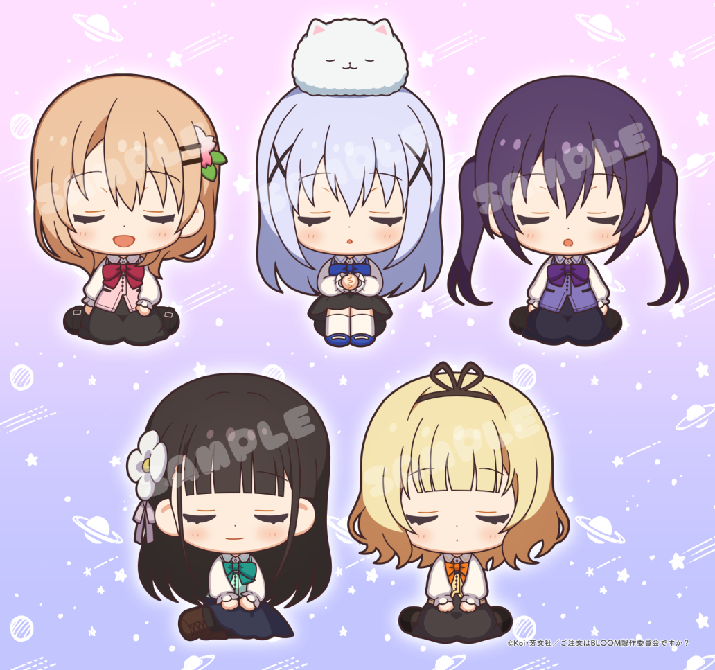 【告知🐰】おやすみシリーズから「ご注文はうさぎですか?BLOOM」のグッズ用ミニキャライラストを描かせて頂きました🌙パステルカラーの可愛いラインナップになっています。よろしくお願いします! #gochiusa twitter.com/anime_bako/sta…