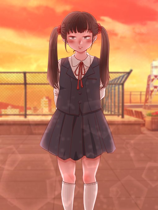 趣味(趣味) クソダサ制服真横ツインテ目つき悪女 #オリジナル #イラスト