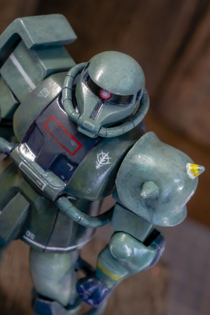 #高石模型祭り の #エイトフォールド 様卓、 #旧キットマニア選手権 に、オラのザク置かせていただきます(^^)/ 宜しければ見に来てねー(*‘ω‘ *)! #レインボー塗り #新MAX塗 #ラッカー筆塗り #ガンプラ #プラモ #模型 #旧キット #plamo #gunpla #oldgunpla #vintagegunpla #gunplabuilder #ms06