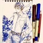 JUMP👟 画材🎨 ヴィフアール細目/シグノ0.28/LYRA(aquarell)/呉竹フィス顔彩12色パレット/水筆 「風薫る、かぐはしの君」展に向けて。 5月5日から21日まで群馬県前橋市のギャラリーアートス ープさんにて開催される男性人物画をテーマにした企画 展に参加します。 #kamo_drawingartist #水彩色鉛筆