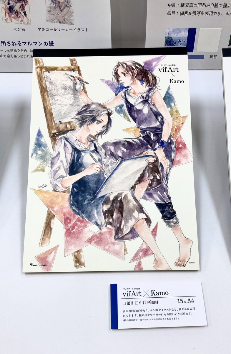 なぜ今回お呼ばれかと言いますとvifArtのコラボレーションにお声がけ頂き、マルマンさんの「水彩画をもっと身近に」とのコンセプトを元に絵1枚を描きました。 コラボレーションパッドは非売品なので市場に並ぶことはないのですが、マルマンさんより何冊か完成品を頂いたのでお届けしたい! twitter.com/kamo_chi/statu…