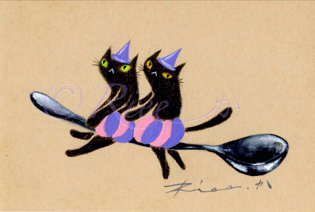 スプーンと黒猫🥄 ドラキュラ✝️ 10月とハロウィン🎃お疲れ様でした! 今日から11月。今年もあと2ヶ月です🍁 Instagram instagram.com/riee.ka Riee.か BASE SHOP riee.base.shop #絵 #イラスト #黒猫 #アクリル画 #スプーンと黒猫