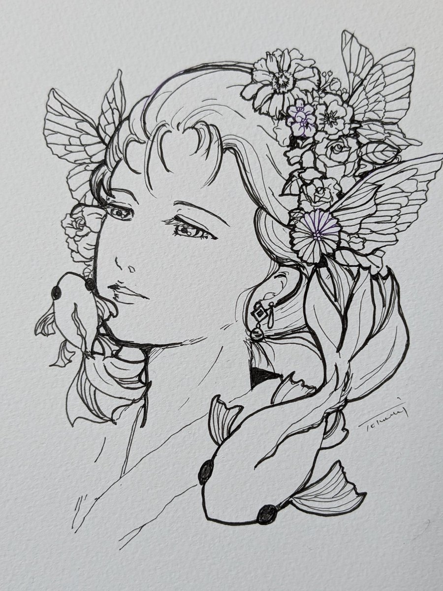 新年用イラスト下書き✏️からのペン入れ🖋️ 間に合うかドキドキ💓 #イラスト好きな人と繋がりたい #イラスト #アナログ絵師さんと繋がりたい #絵描きさんとつながりたい #アナログ絵 #芸術同盟