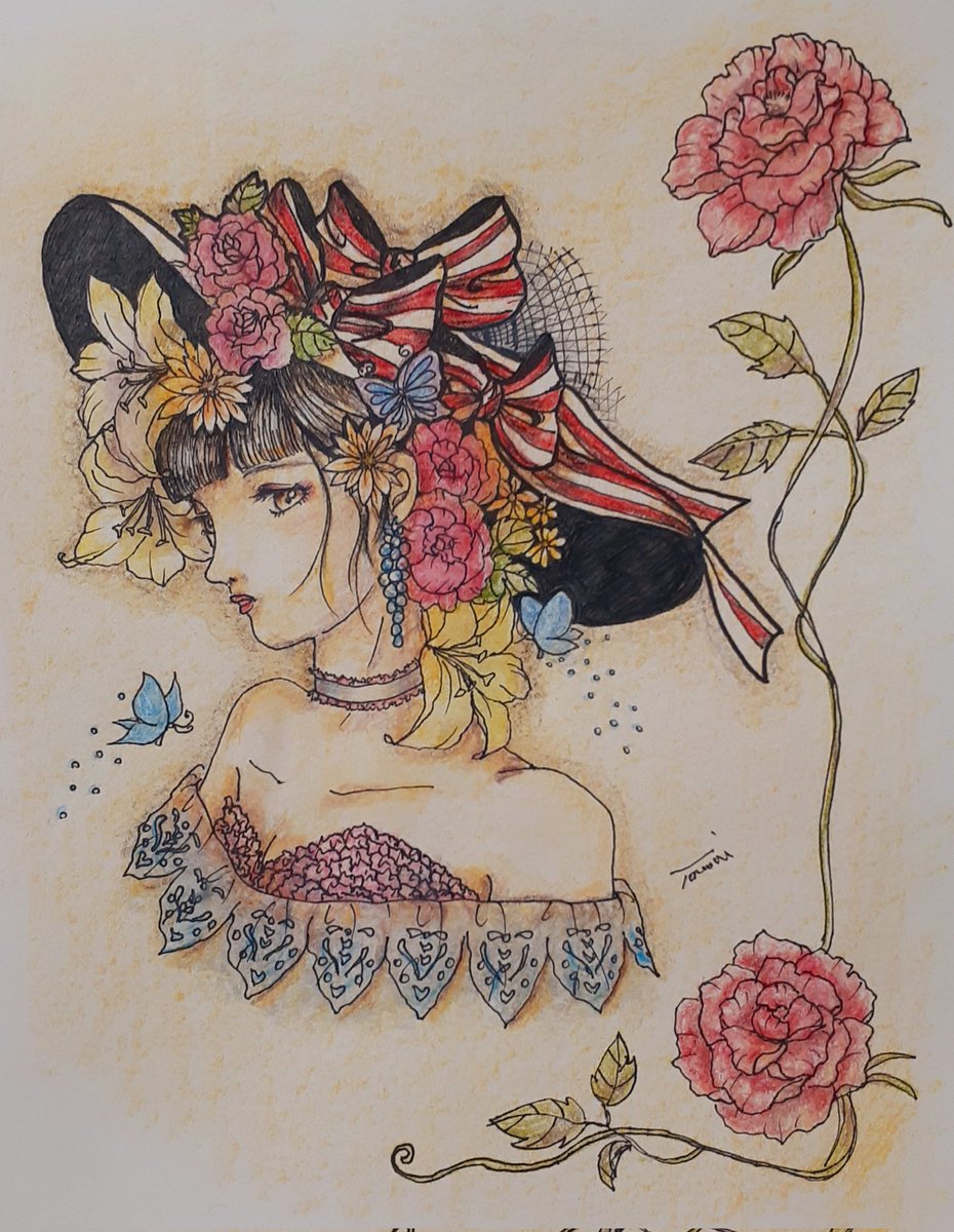 アナログなので、じわじわ塗り始めてます🎨 #イラスト好きな人と繋がりたい #私の絵柄が性癖に刺さる人に届いてほしい #アナログ絵師さんと繋がりたい #絵描きさんとつながりたい #アナログ絵 #バレンタイン