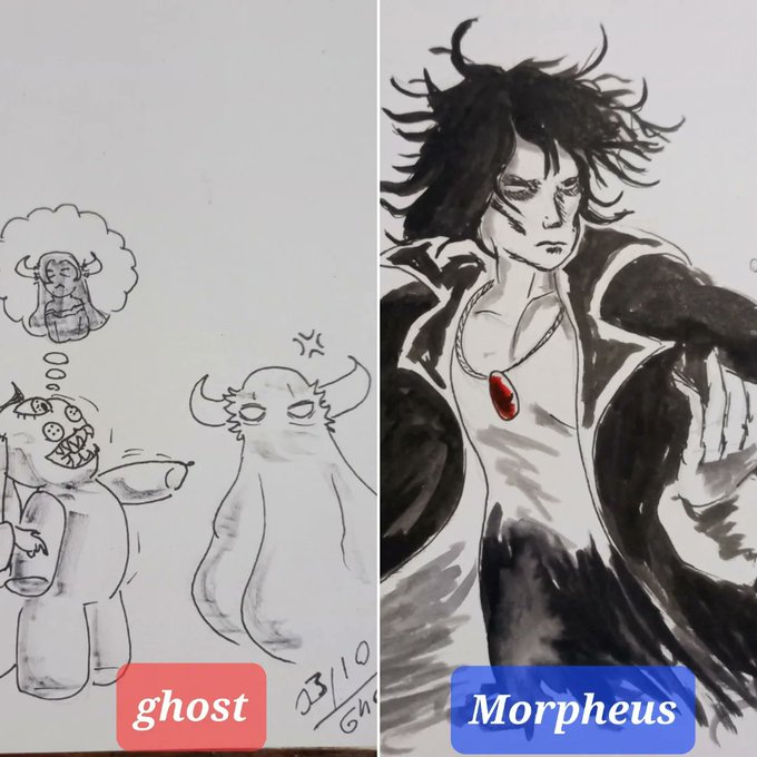 Día 3 , "Ghost " y " Morpheus the Sandman " Me dormí antes de poder publicar lo - - #inktober2022 , #Inktober , #inktober2022day3 .